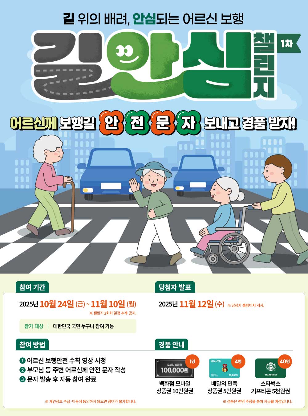 * 어르신 보행 안전 수칙 영상 링크가 작성하신 문자 내용과 함께 발송됩니다.